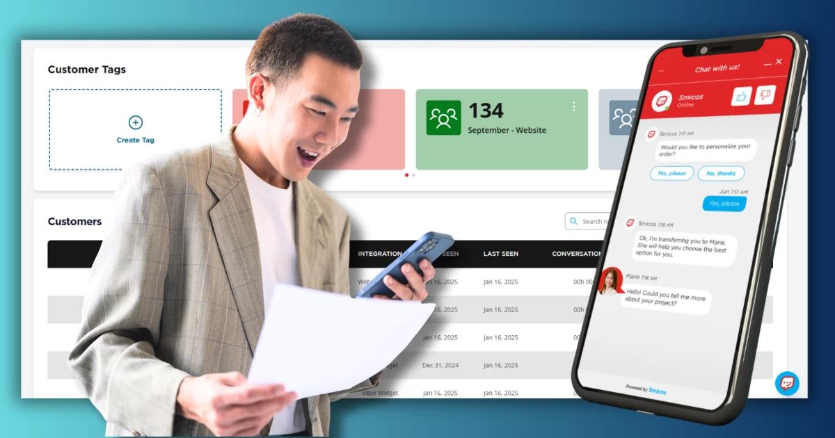 With Smicos, you can connect with customers instantly through automated chat. Promo codes can be sent directly via messaging, questions can be answered right away, and customers can be guided straight to checkout. This real-time interaction builds trust, sustains excitement, and increases the likelihood of closing a sale.