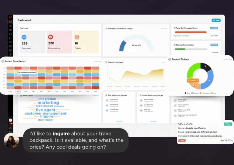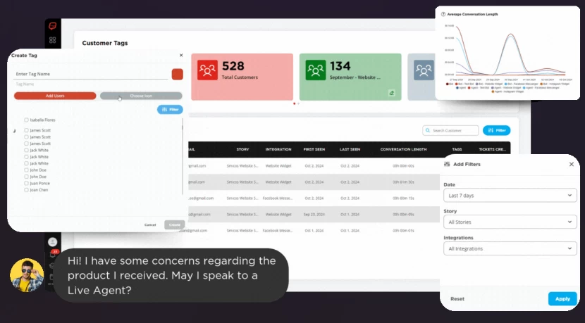 Easily transfer conversations to live agents, resolve issues faster with quick-response tools, and manage tickets effortlessly.