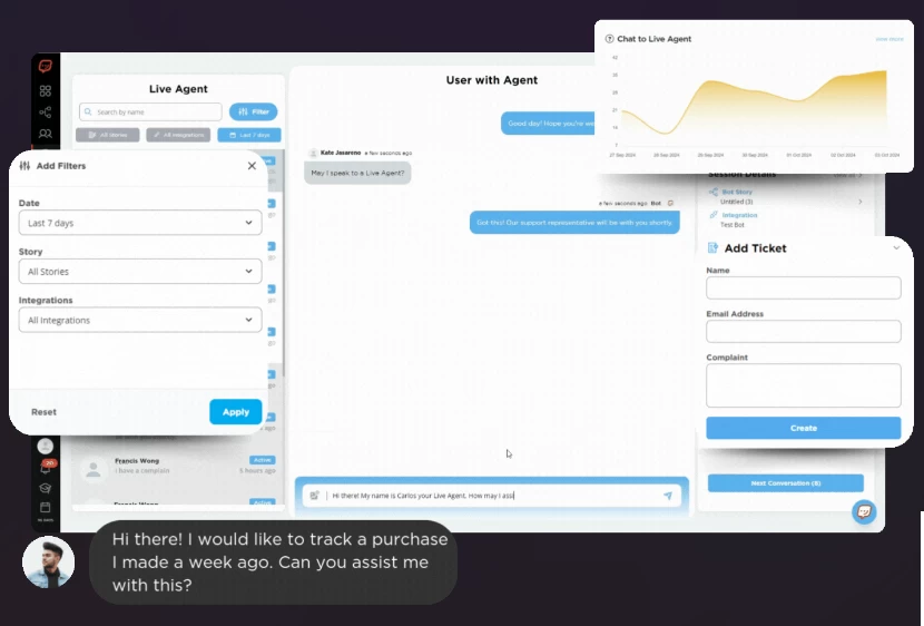 - Improve Collaboration: Features like the Ticketing System and Live Agent Support promote efficient collaboration by centralizing tools, streamlining ticket management, and enabling smooth transitions between automated systems and human agents.