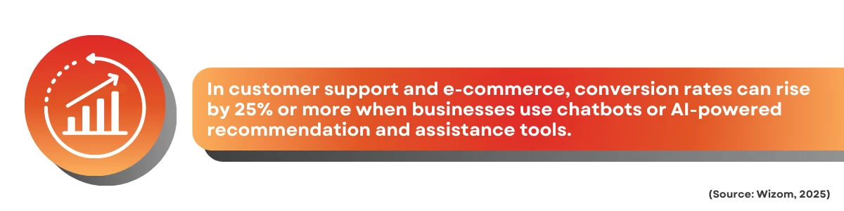 Chatbots, on the other hand, deliver far stronger results. Reports from last year showed that chatbot funnels generated three times more conversions compared to traditional web or email funnels. This year, the gap widened even further. AI chatbots significantly boosted conversion rates by 23% to 70% across industries, with an impressive average ROI of $8 for every $1 invested.